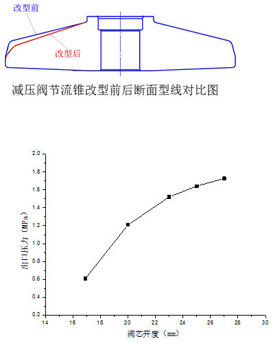 改型后減壓閥出口壓力隨閥芯開度變化